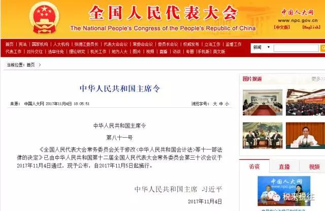11月4下午,十二屆全國人大常委會第三十次會議表決通過了關于修改會計法的決定,修改了“從事會計工作的人員,必須取得會計從業資格證書”的規定,改為“會計人員應當具備從事會計工作所需要的專業能力。”